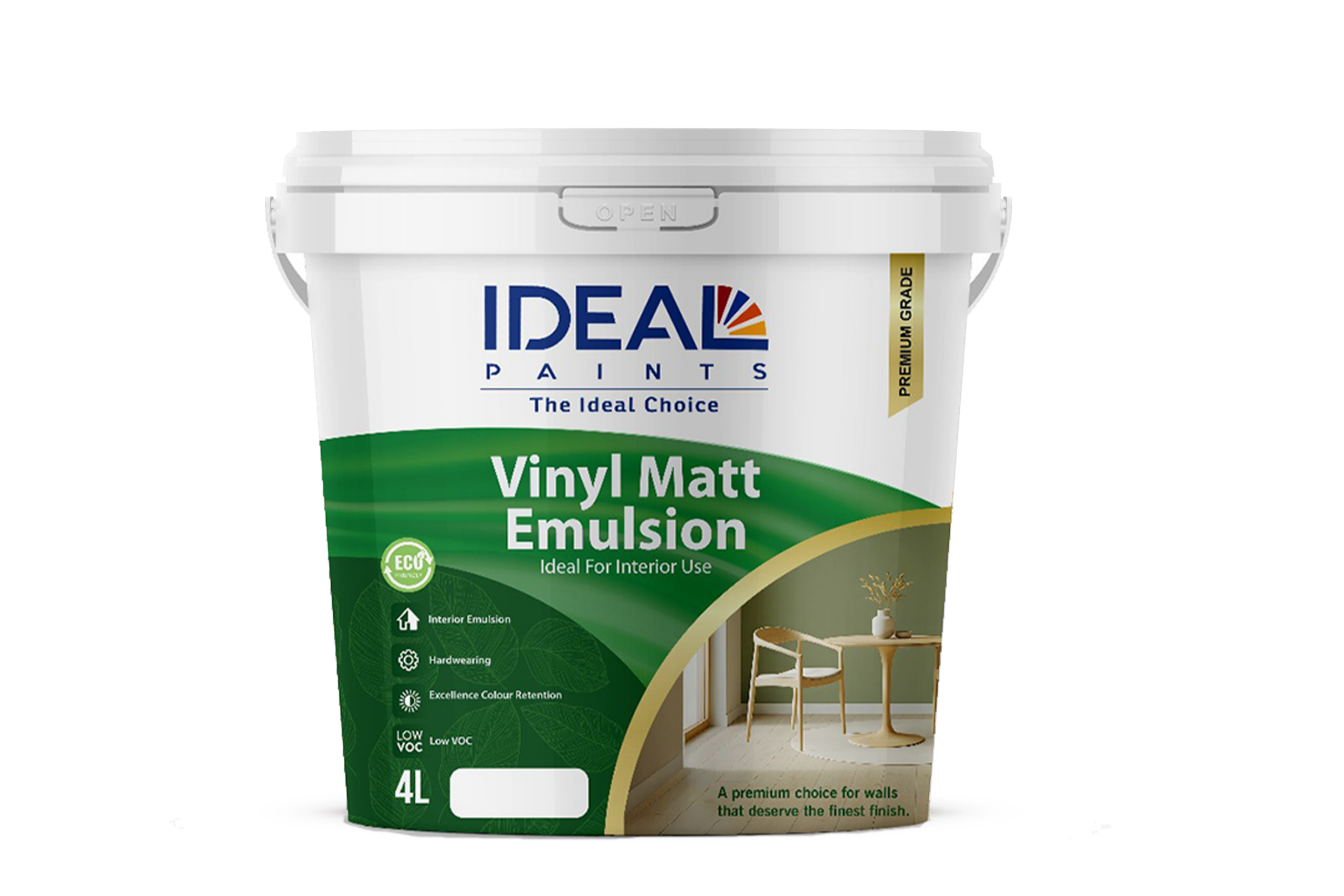 Ideal Vinyl Matt Emulsion is top quality acrylic emulsion-based paint. It gives maximum protection on interior and exterior surfaces and produces a high opacity smooth matt easy to clean finish without leaving brush marks. Ideal Vinyl Matt Emulsion can be used on all types of new and previously painted surfaces i.e. plaster, concrete, gypsum boards, wooden boards,bricks etc. Ideal Fungicidal Matt Emulsion is recommended for coastal/high humidity areas to combat mold and algae growth.